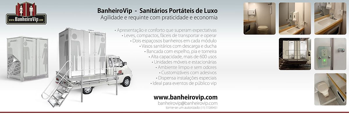 Sinônimo de qualidade e inovação a marca BanheiroVip não só lidera como da nome ao emergente segmento de banheiros-de-alto-luxo portáteis no mercado.